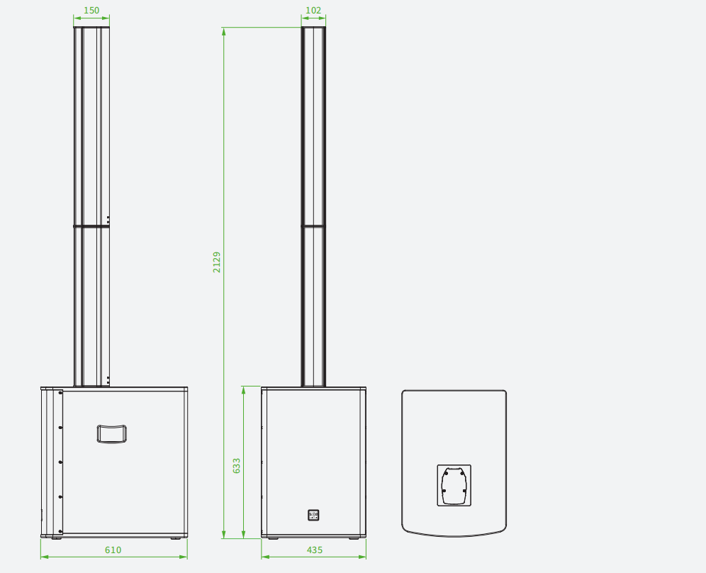 EC15音柱部分由12个3.5"高效换能中音单元与4个0.5"压缩高音单元组成,高音部分配备的多层波导管,同时兼顾远、近场覆盖。中音部分垂直阵列安装,与高音完美匹配的同时提供了一个宽广的水平覆盖范围,不管在任何听音距离,都能提供一致的听感。