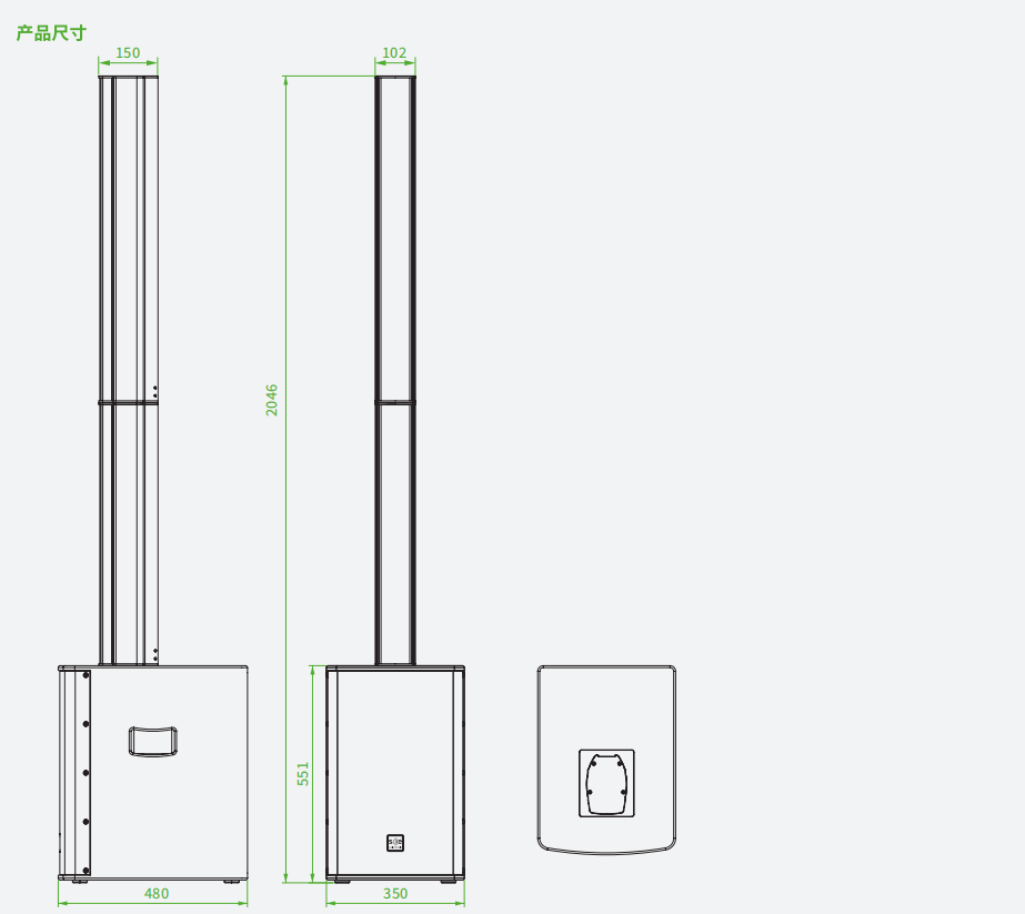 HC300低音部分采用12“低音单元与倒相箱的设计,前网罩已覆透声防尘网布,为音柱系统提供了坚实的声学基础。HC300系统拥有独特的设计,使之能够分体壁挂应用。音柱部分由12个3.5"高效换能中音单元与4个0.5"高音压缩单元组成,高音部分配备的多层波导管,同时兼顾远近场覆盖:中音部分垂直阵列安装,与高音完美匹配的同时提供了一个宽广的水平覆盖范围。不管在任何听音距离,都能提供一致的听感。